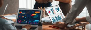 Panorama,Shot,Analyst,Team,Utilizing,Bi,Fintech,To,Analyze,Financial